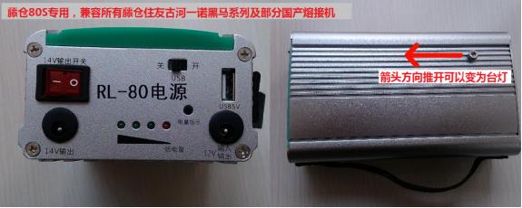给住友,古河,一诺,黑马系列熔接机供电时,请插在12V输入输出接口上,给藤仓50S,60S/R,70R,80S,21S,22S,12S供电时,请打开14V开关,插在14V输出接口上。(因为藤仓工作电压在12V-16V之间)。
